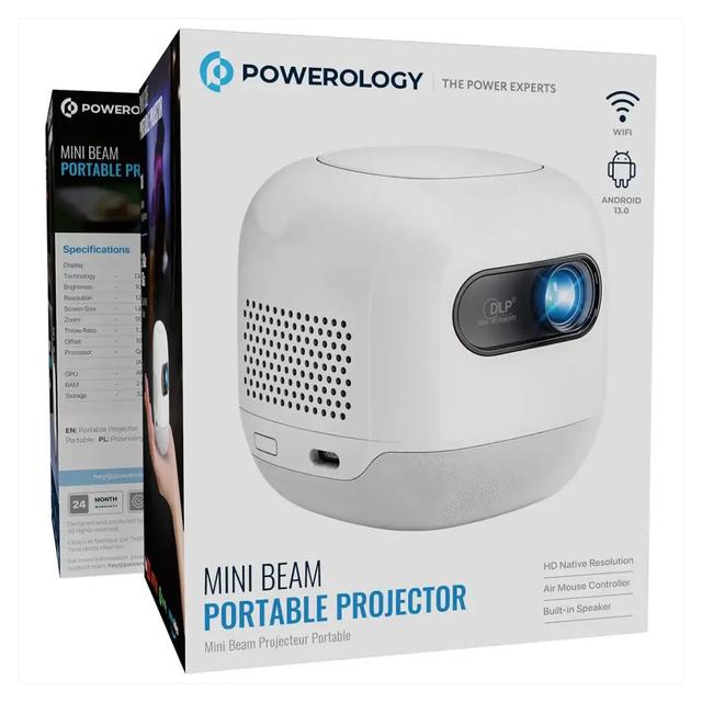 Powerology PWMPM2WH Mini Beam Portable Projector — FHD resolution with 4K support