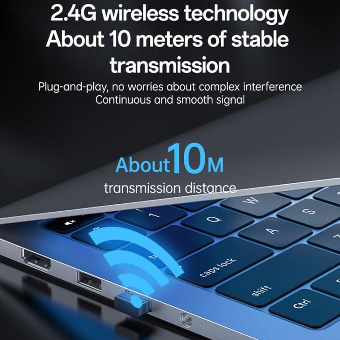 - Use it anywhere — at home or in the office — thanks to its 2.4G wireless technology that ensures a stable connection and instant “Plug & Play” setup with no drivers or complicated installations. It also offers a 10-meter range, giving you complete freedom of movement without cable restrictions.