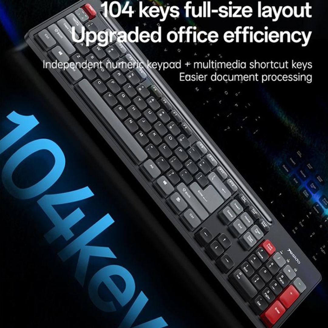 - Do you type a lot or handle multiple tasks at once? The keyboard’s 104-key layout is designed for high productivity and fast performance, while the laser-engraved characters guarantee durability and prevent fading even with long-term use — combining a sleek look with lasting quality.