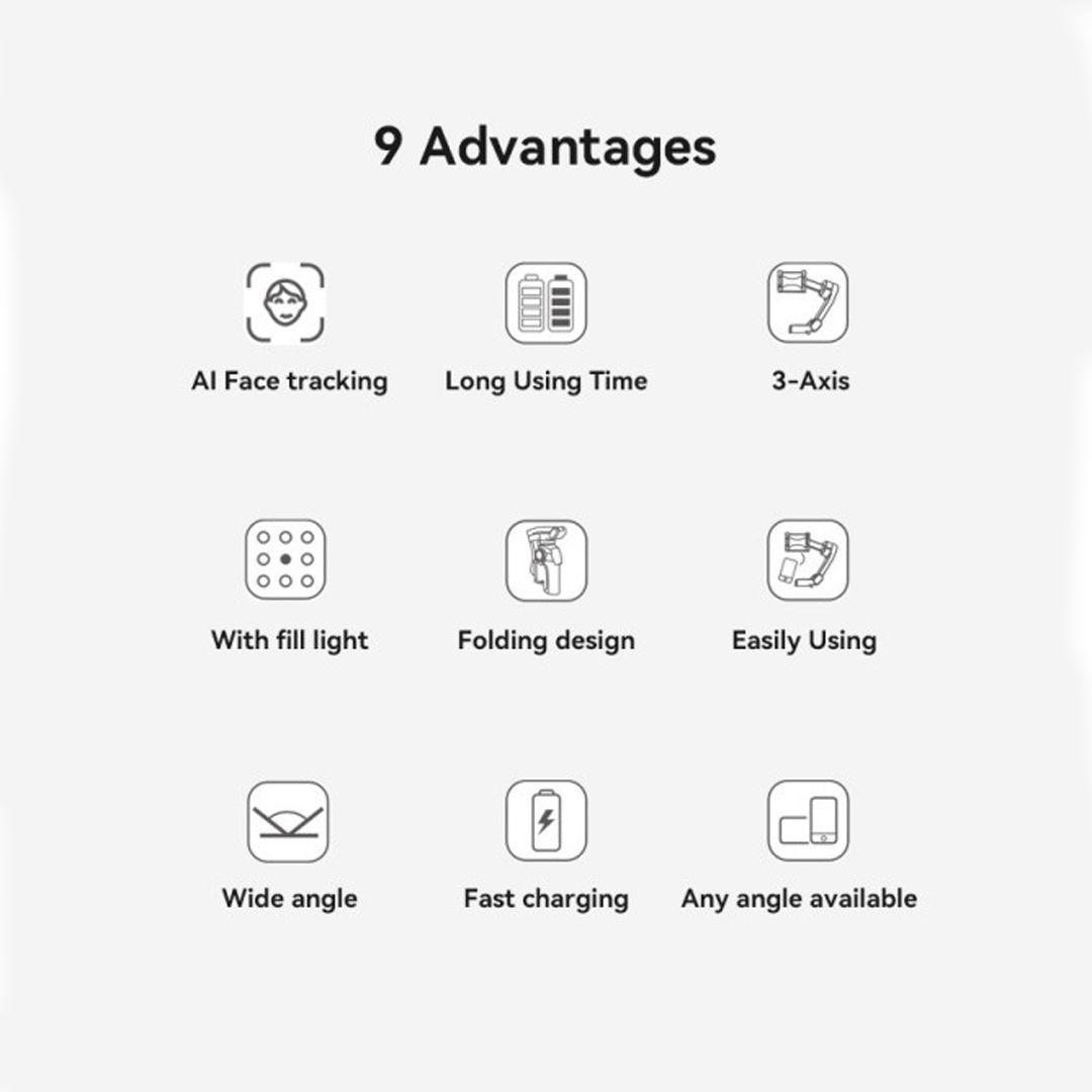 The gimbal automatically detects and follows your face while you move. Even if you walk or change angles, the camera stays focused on your face without any effort.
