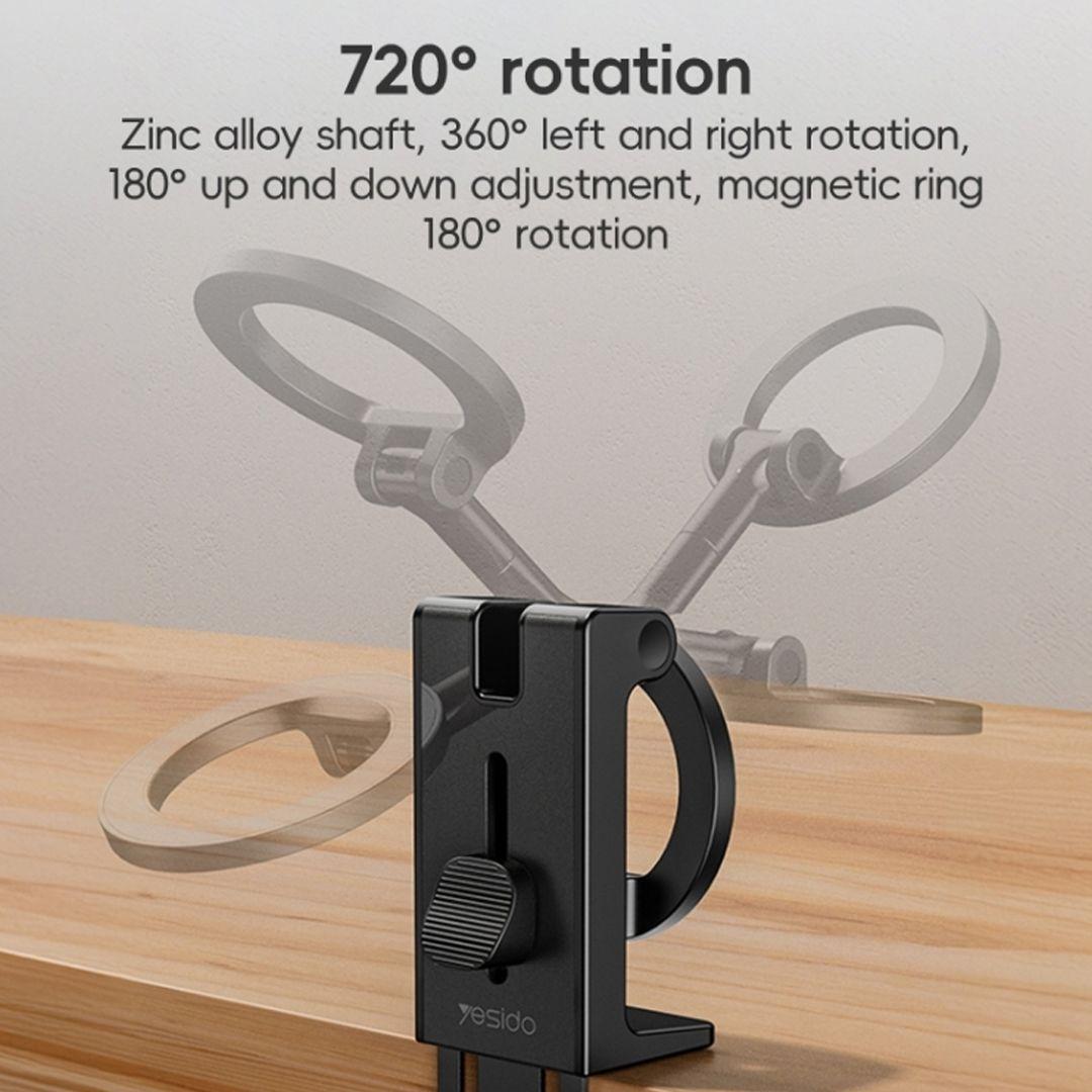 Magnetic phone holder from Yesido C298 with horizontal and vertical rotation and a clip mount