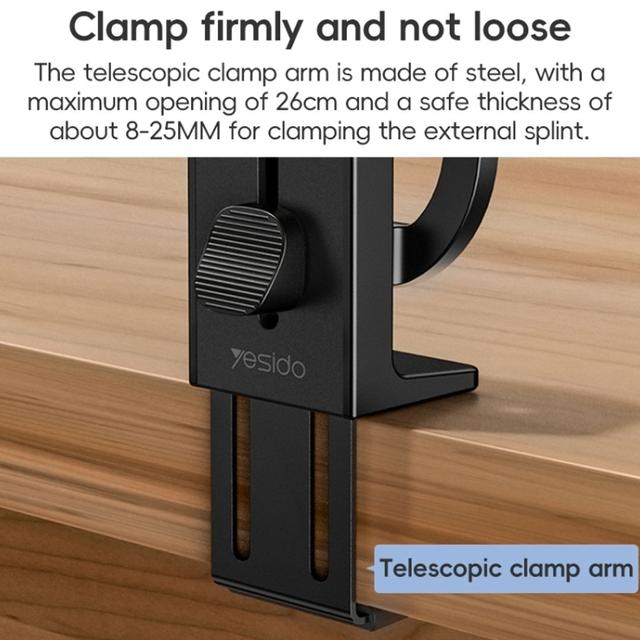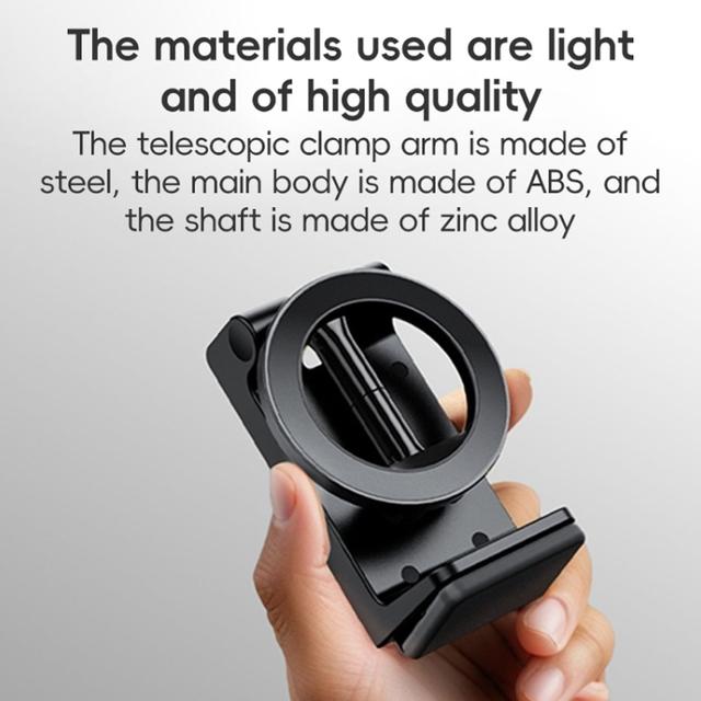 - Stable, Extendable Base: The telescopic clamp arm is crafted from high-resilience steel, providing excellent grip and stability — even with larger devices.
