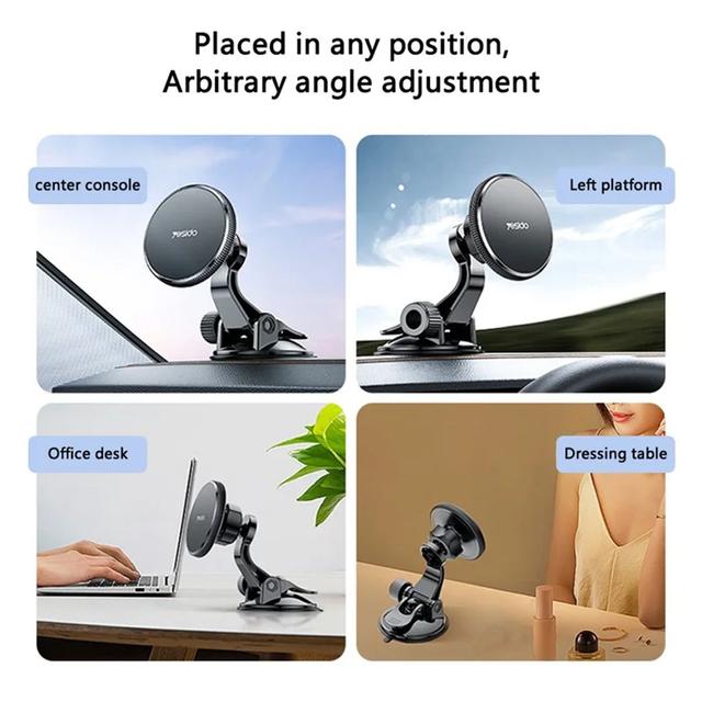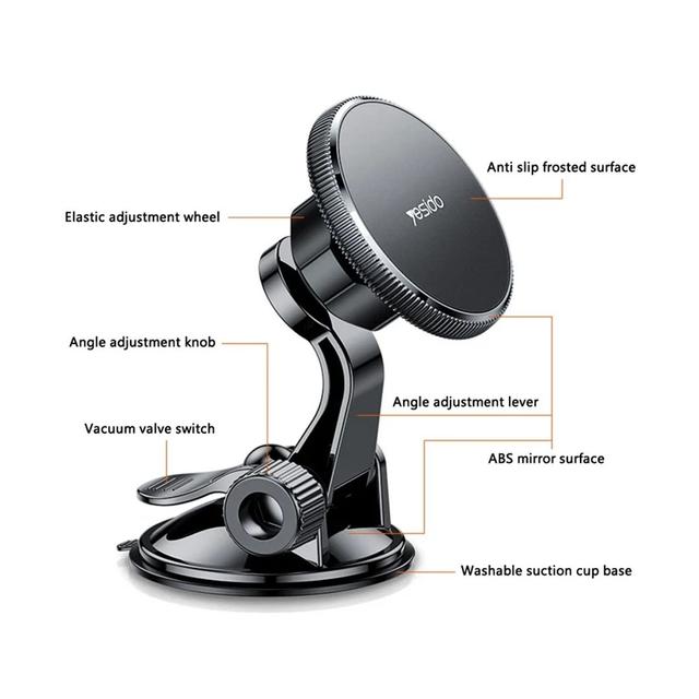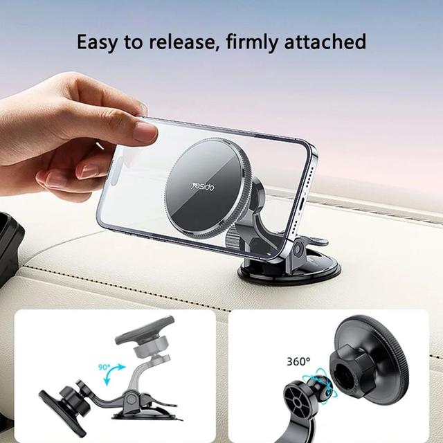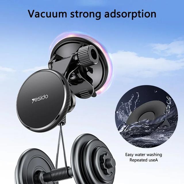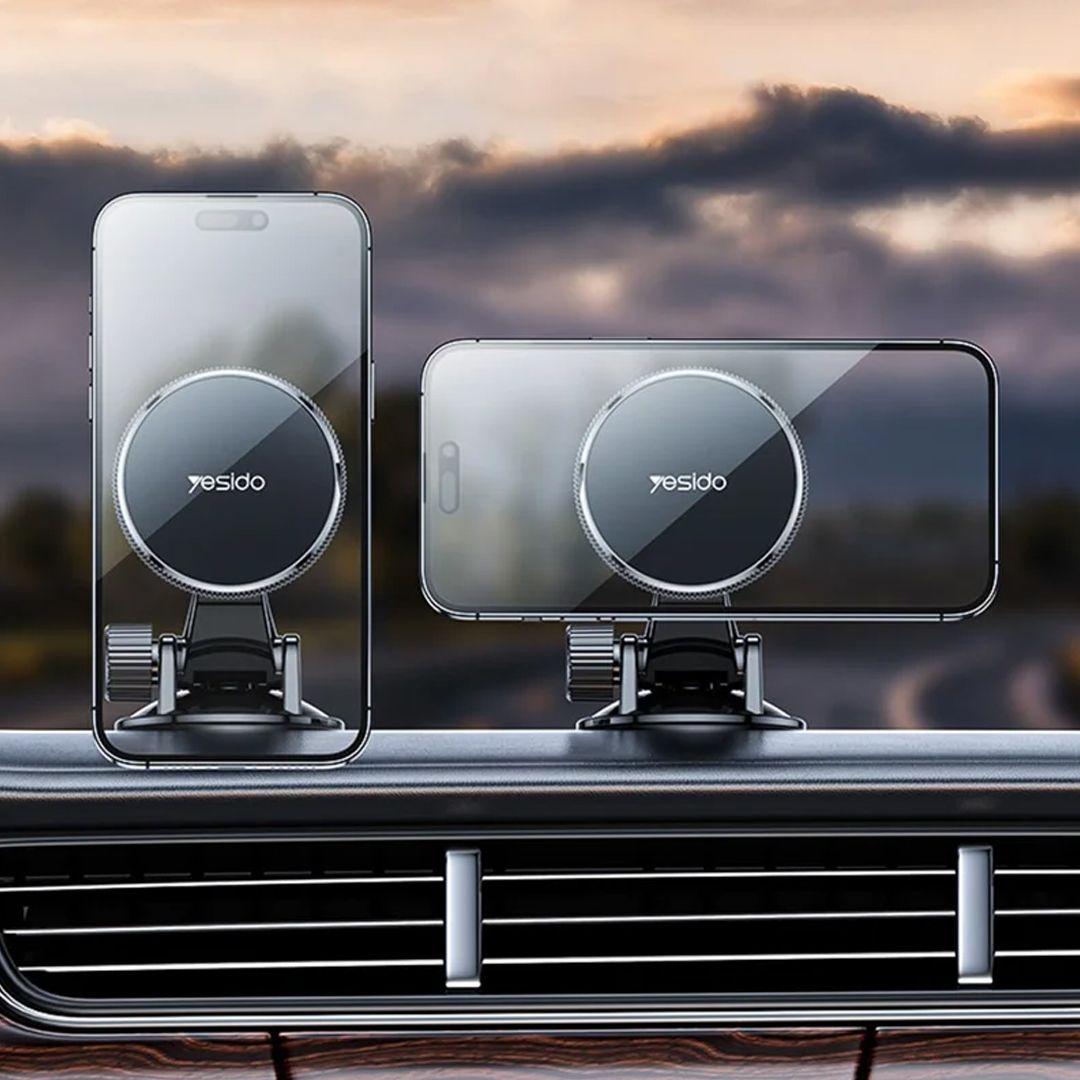The Yesido C177 uses a vacuum negative-pressure suction base, creating an ultra-secure seal on dashboards or windshields.