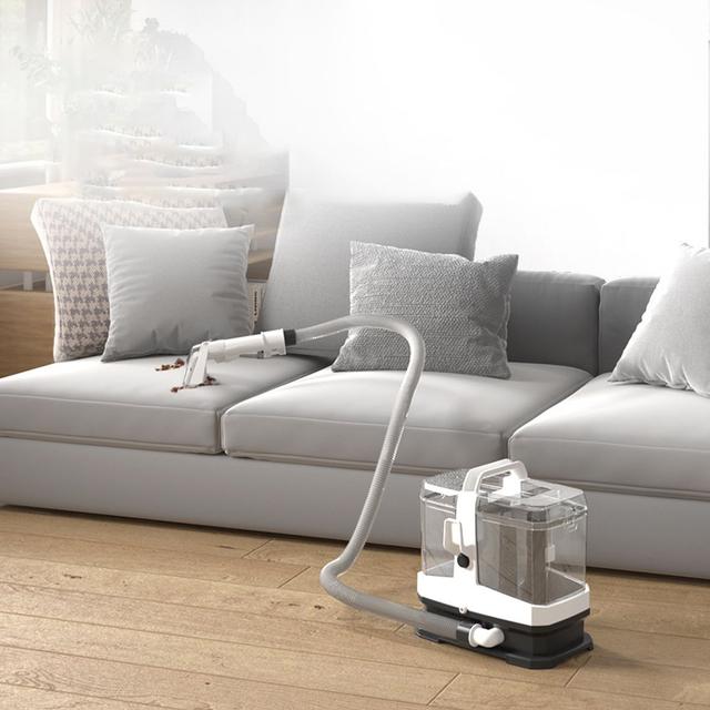 With a single press, the machine sprays cleaning water onto the dirty area and instantly vacuums it up with strong suction power.
