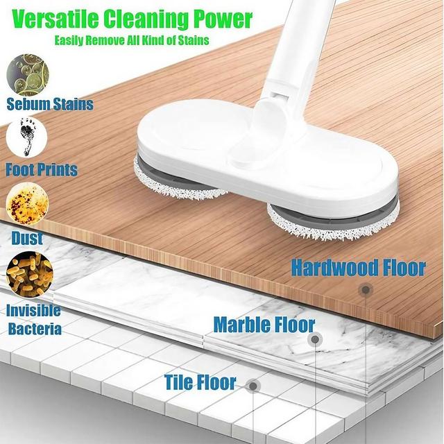 Comes with 2-in-1 dual mop pads for hard floors and carpets. The washable microfiber pads are reusable, eco-friendly, and gentle on all surfaces.