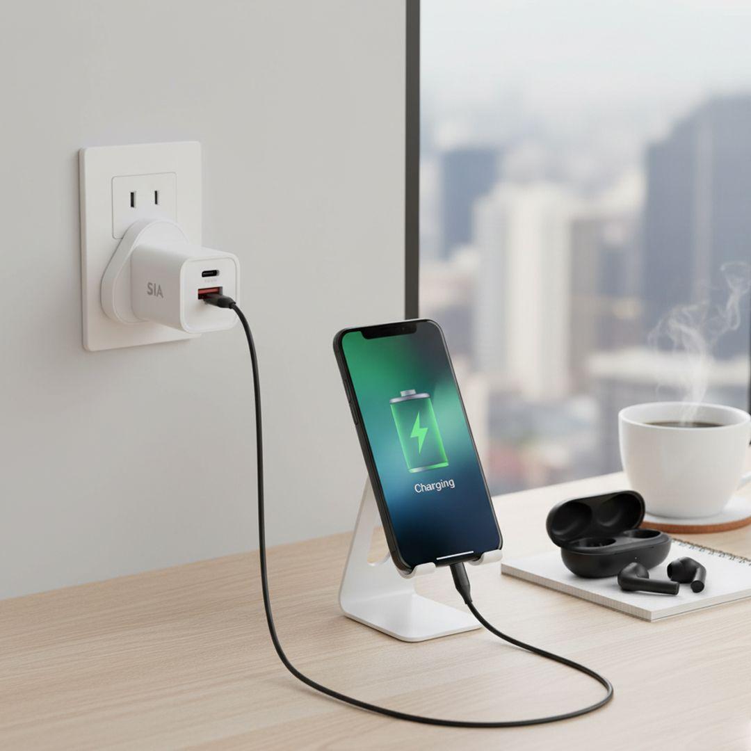Here’s the solution — the SIA VoltBase GaN Charger, delivering fast, smart, and safe charging for all your devices — from smartphones and tablets to laptops — all in one compact, travel-friendly design that fits perfectly at home, in the office, or on the go.