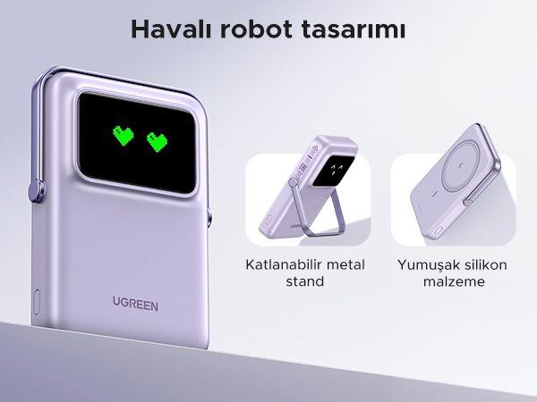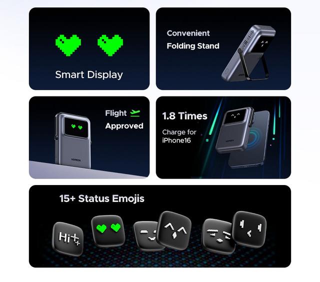 TFT Fun Display: Ugreen magnetic power bank has a bright TFT display that reflects the battery power through expressions, so the power status is clear at a glance, while adding fun to your charging experience