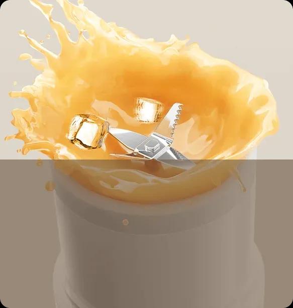 Crush ice and blend smoothly → 304 stainless steel serrated blade engineered for fine texture.