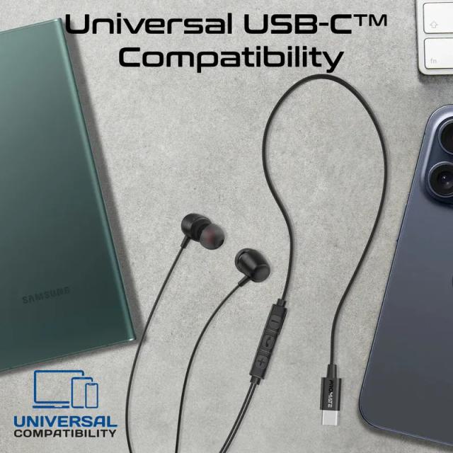 Ergonomic In-Ear USB-C Wired ENC Stereo Earphones - Black