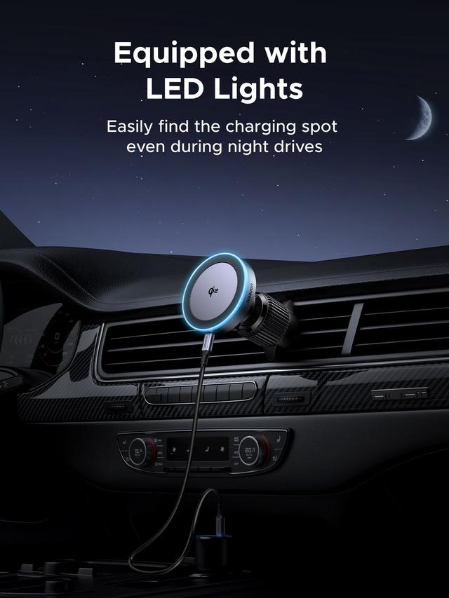 UGREEN MagSafe Wireless Charger for Car 15W Qi with Light Display, Cell Phone Holder for Car