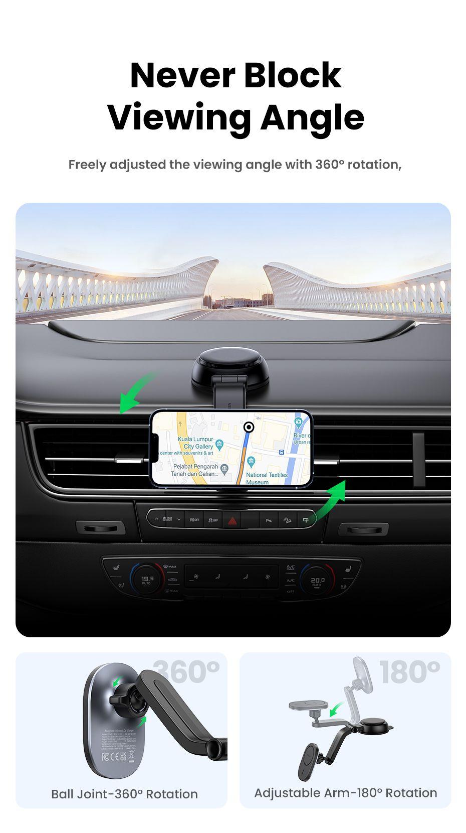 UGREEN Magnetic Wireless Car Charger 15w