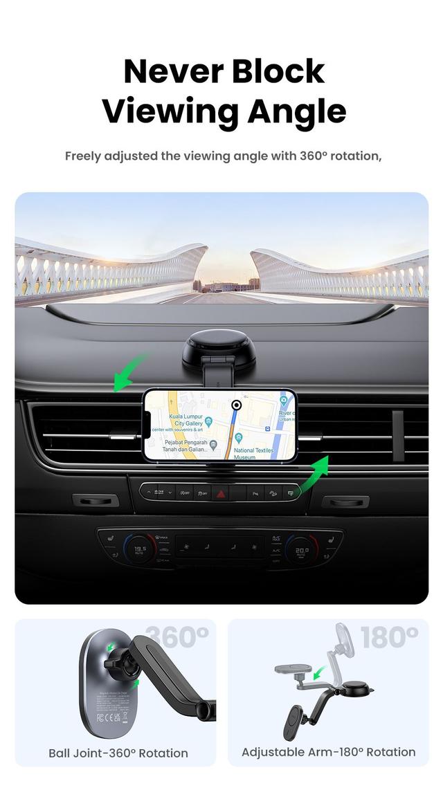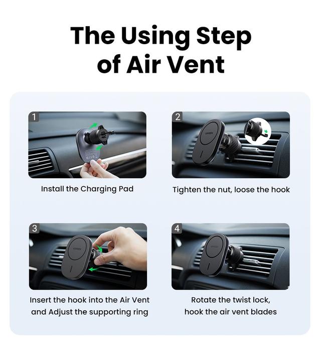 Easy Installation: Clips into any car air vent or sticks securely to dashboard/windshield using a 3M VHB adhesive pad. Compact design fits all cars.