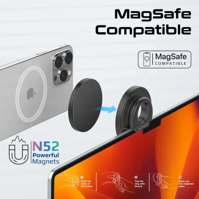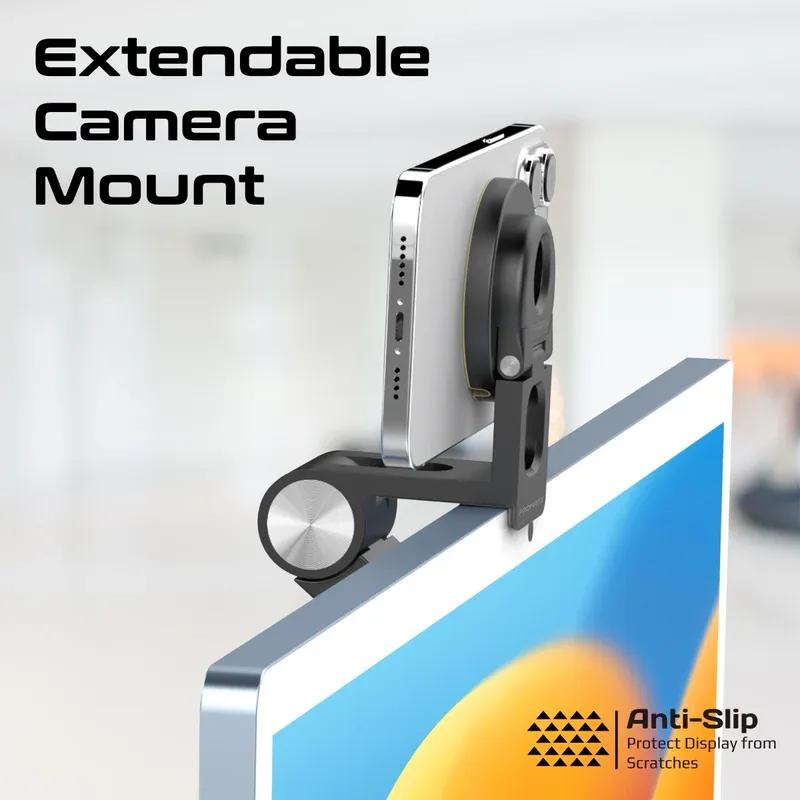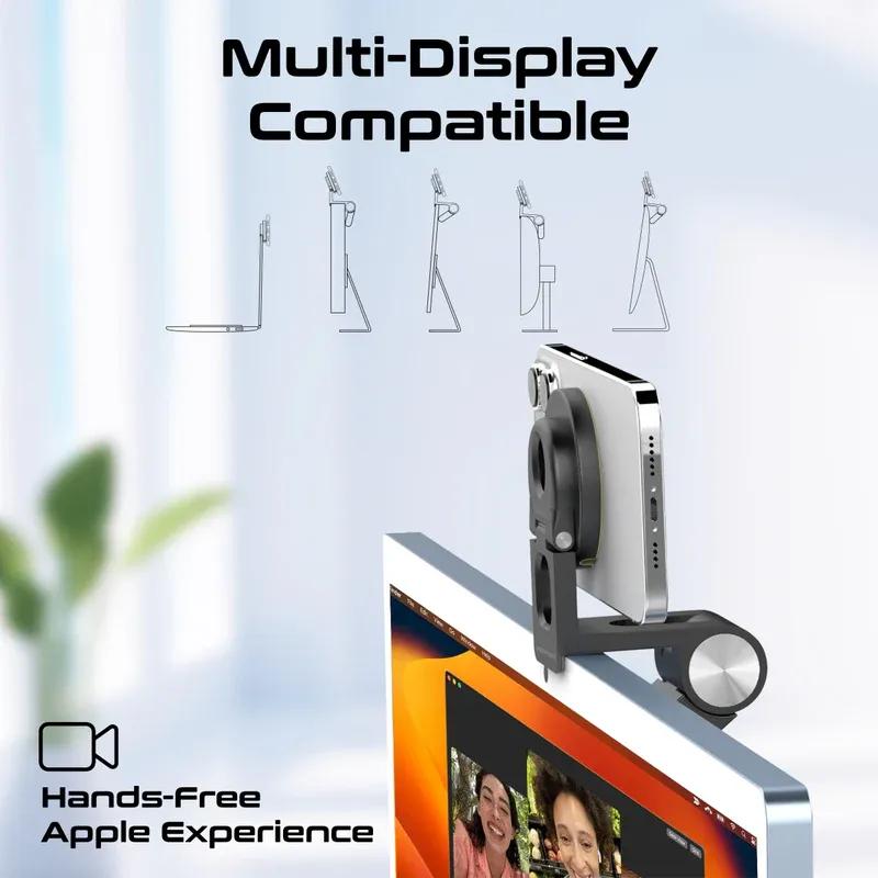 Introducing VersaMount, the ultimate hands-free accessory for your Apple and other devices. VersaMount is not just a phone stand but also a versatile extendable camera mount that securely grips your phone and can be effortlessly mounted on the top of any screen. With its foldable design and 16 N52 strong magnets, VersaMount provides a stable platform for FaceTime calls and content creation, ensuring the perfect desk view every time. MagSafe compatibility adds an extra layer of convenience, guaranteeing a snug fit and seamless integration with your Apple ecosystem. Whether using your iPhone as a webcam with your iMac, or MacBook, VersaMount offers a flexible and durable solution for your hands-free experience. Say goodbye to shaky video calls and hello to effortless multitasking with VersaMount.