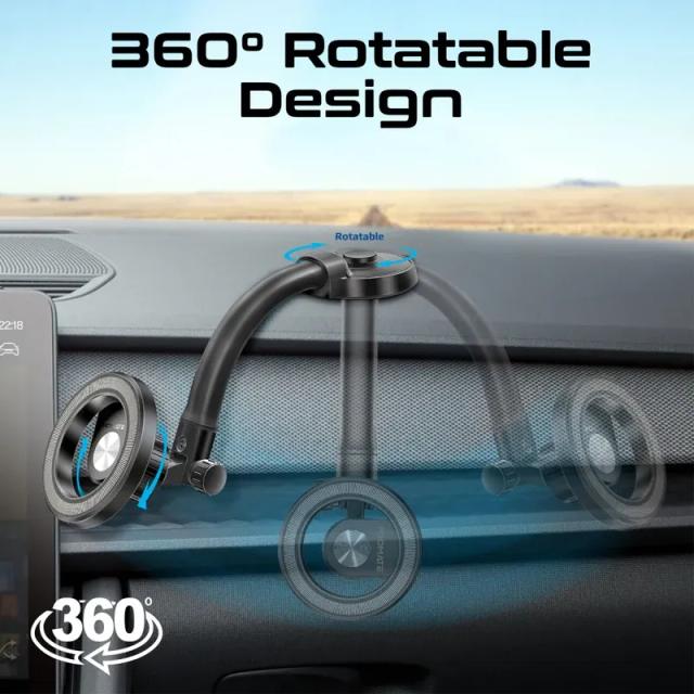 Experience effortless and secure device mounting with MagHoop-GN, featuring perfectly aligned N52 magnets for a hassle-free journey. Enjoy optimal viewing angles on the go with its 360° rotatable design, ensuring distraction-free driving. The quick and secure installation makes using this mount a breeze. The cradleless and gooseneck arm design adds a touch of style to your car's interior, making MagHoop-GN the perfect blend of functionality and aesthetics.