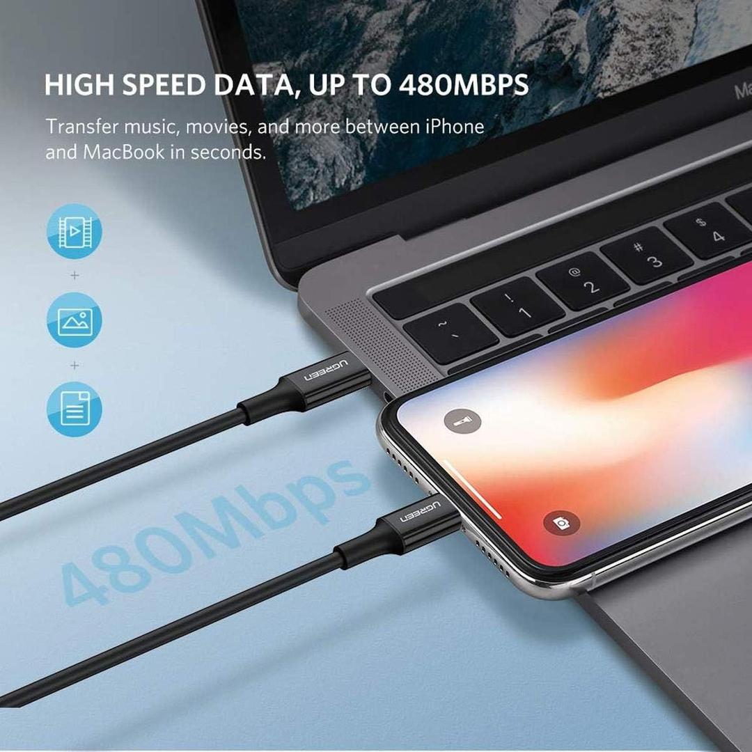 UGREEN USB-C to Lightning Cable Rubber Shell 2m (Black)US171