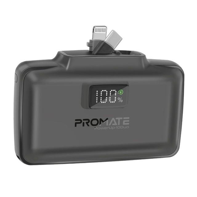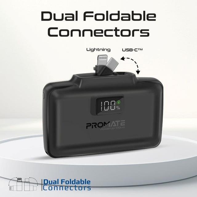 Promate PowerUp-10Duo – 10000mAh Ultra-Compact Fast-Charging Power Bank with Dual Folding USB-C & Lightning Connectors