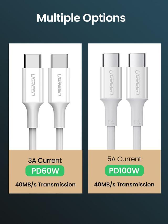 UGREEN Cable USB-C 2.0 to USB-C ABS 1.5m (White)