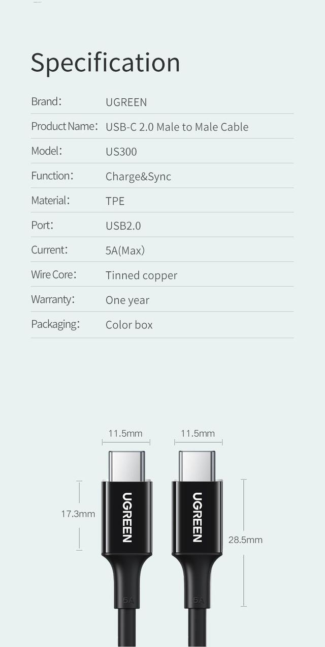 UGREEN 100W 2m Type-C to Fast Charging Power Delivery Cable, Smartphone Adapter