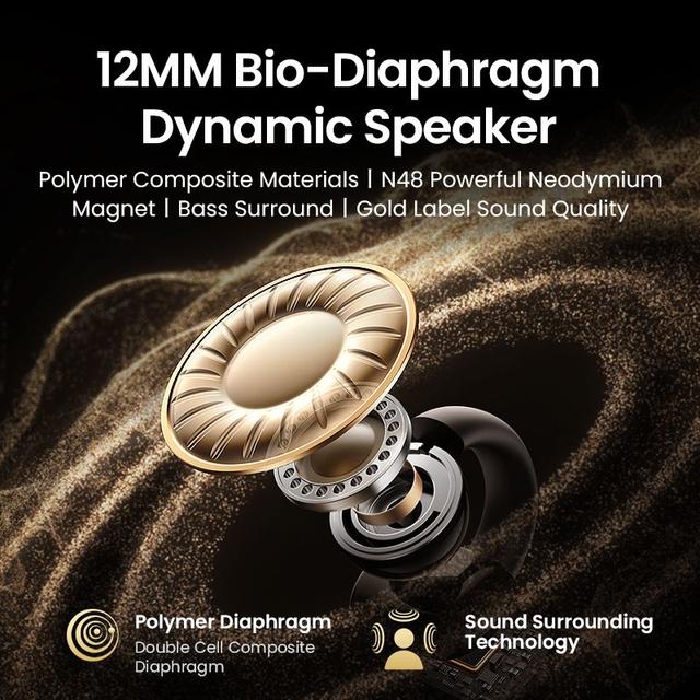 Surround stereo sound. These wireless music headphones feature 12mm drivers and composite diaphragms for powerful bass and clear mids. Designed for audiophiles and music lovers, these headphones support dual-device connectivity with seamless switching between them. Each earbud has a built-in microphone for making phone calls. ENC noise cancellation technology ensures you can be heard clearly by others.