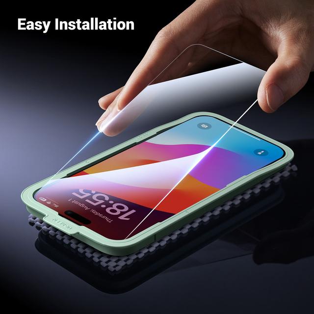 It features an easy-to-install frame that ensures perfect, bubble-free alignment.