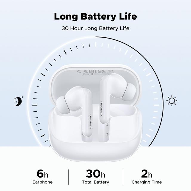Enjoy up to 6 hours of continuous music or talk time on a single charge, and up to 30 hours with the charging case—staying connected all day without worry.