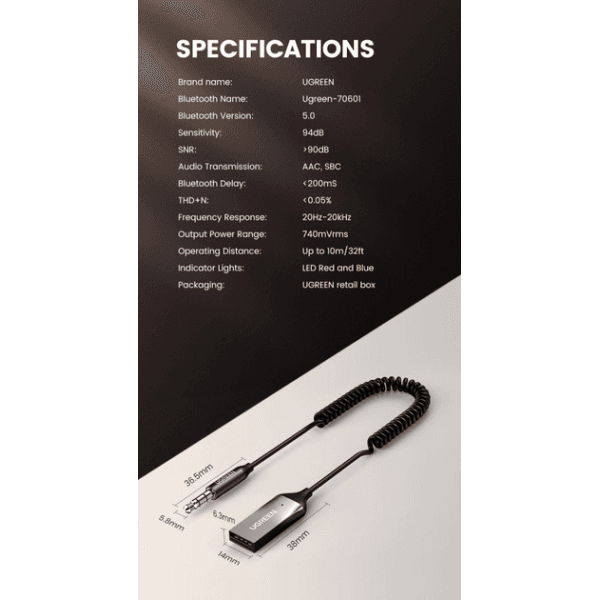 The UGREEN CM309 Bluetooth receiver is a practical car audio system that transforms your traditional audio system into a wireless one. With Bluetooth 5.3 support, it ensures a stable connection, fast automatic reconnection, and high-quality CD-quality sound.