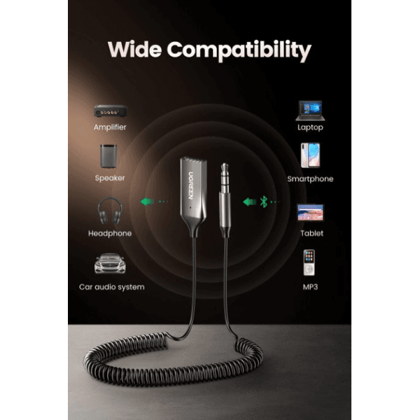 UGREEN Bluetooth Car Receiver Aux with Mic (Space Gray)