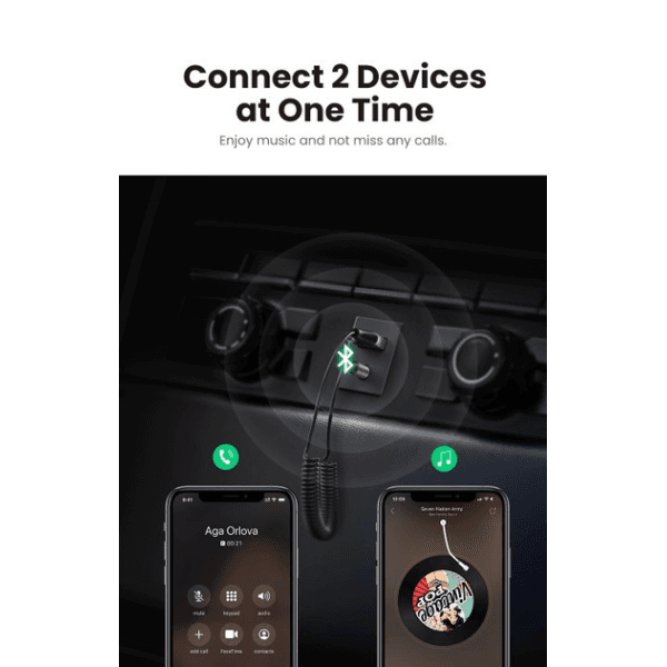 The built-in microphone allows for hands-free calling, making driving safer. The receiver supports simultaneous connection of two devices, allowing you to listen to music without missing a call.