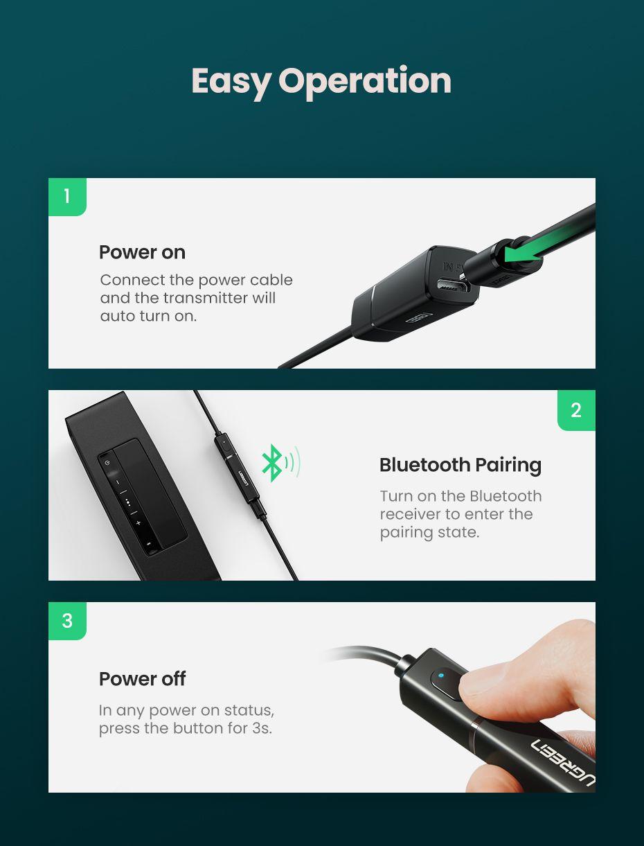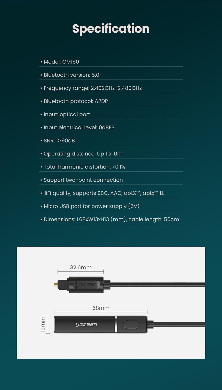 UGREEN Wireless Audio Adapter with Bluetooth 5.0, 3.5mm Mini Jack, Black