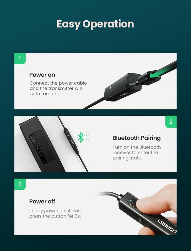The Bluetooth 5.0 transmitter can be connected to two pairs of wireless headphones at the same time. The internal DSP can automatically coordinate the audio transmission to ensure more stable audio signal transmission. Perfect for exercising, watching TV programs late at night without disturbing others.