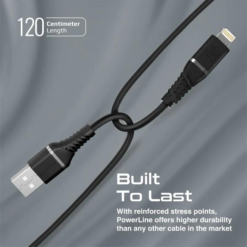 Charge your device at faster speeds with this MFi Certified 2.4A USB-A to Lightning cable. With reinforced stress points and silicon-coated structure, PowerLine offers higher durability than any other cable in the market. Stay on the go with PowerLine-Ai120.