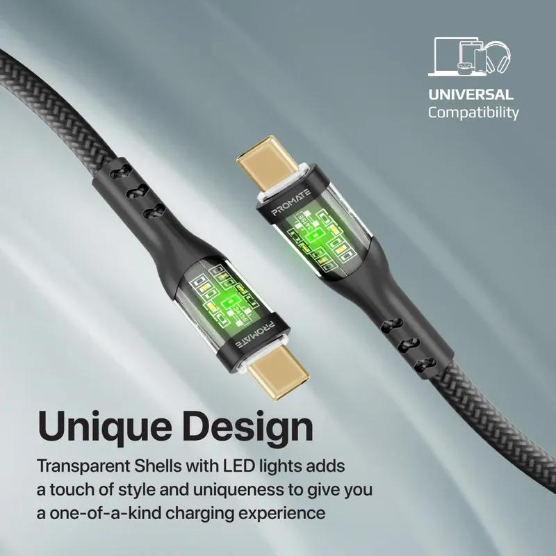60W Power Delivery Ultra-Fast USB-C Cable with Transparent Shells