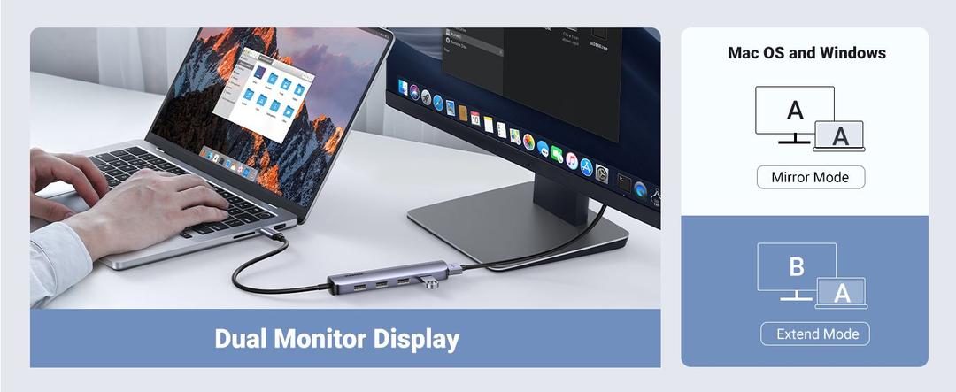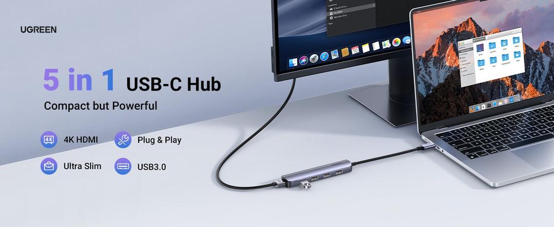 Increase the capabilities of your computer. UGREEN CM417 adapter is equipped with a number of ports, i.e. USB 3.0 or HDMI. It allows you to display 4K video and transfer data at speeds of up to 5 Gbps. With its help you can connect additional accessories to your computer, such as a keyboard or mouse. It stands out for its wide compatibility, and its portable design means you can always have it at your fingertips.
