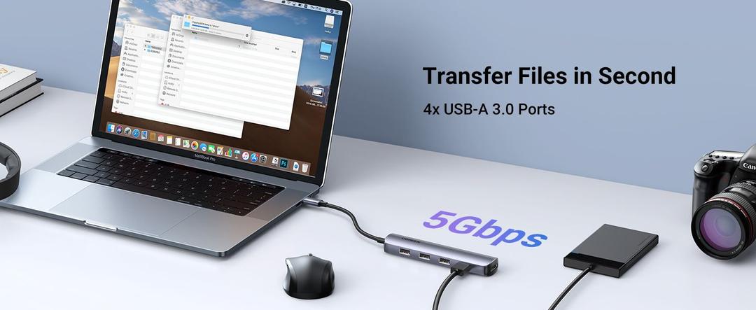 Do you often transfer files? Tired of endless waiting? The adapter is equipped with a USB3.0 port that allows you to transfer data at speeds of up to 5 Gbps. It only takes a few moments to copy your photos, videos or documents from a flash drive to your computer - you can transfer up to 1G in just a second!