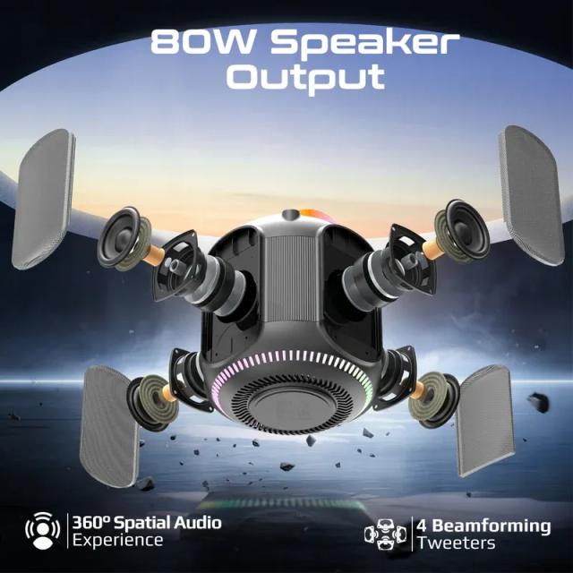 Dynamic RGB Bluetooth v5.3 True Wireless 80W Speaker, 6Hrs Playback