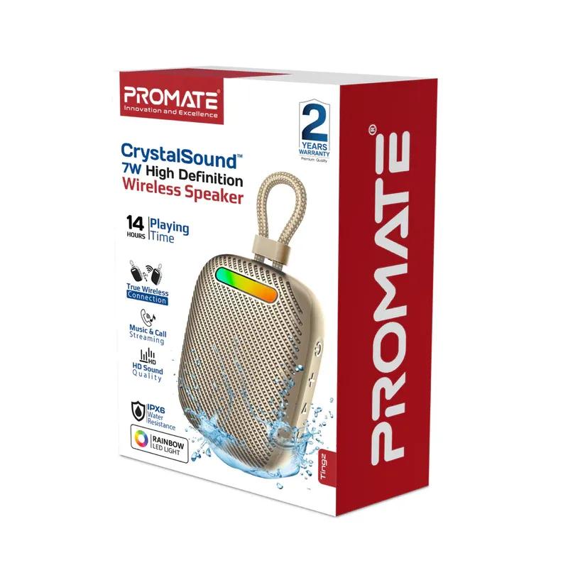 Experience bold audio performance in a compact form with the Tingz CrystalSound™ 7W High-Definition Portable Wireless Speaker. Engineered with advanced Bluetooth 5.4 and a premium JL chipset, this speaker delivers powerful, distortion-free sound across a wide 40Hz–20kHz frequency range. With True Wireless Stereo (TWS) pairing, you can wireless connect two speakers together for a wider and more immersive soundscape. The built-in 1800mAh lithium-ion battery offers up to 14 hours of uninterrupted playback and 500 hours of standby time. Designed for everyday adventures, its IPX6 water resistance rating keeps the music going rain or shine. The speaker also features hands-free calling, and supports music playback via TF card, accommodating MP3, WMA, WAV, APE, and FLAC formats. Built with durable ABS plastic and metallic spray finishing, Tingz CrystalSound™ is both stylish and rugged. Three vibrant RGB light modes add visual rhythm to your sound. Whether you're hiking, chilling by the pool, or working in your room, the Tingz CrystalSound™ speaker is your reliable companion for immersive sound anywhere.