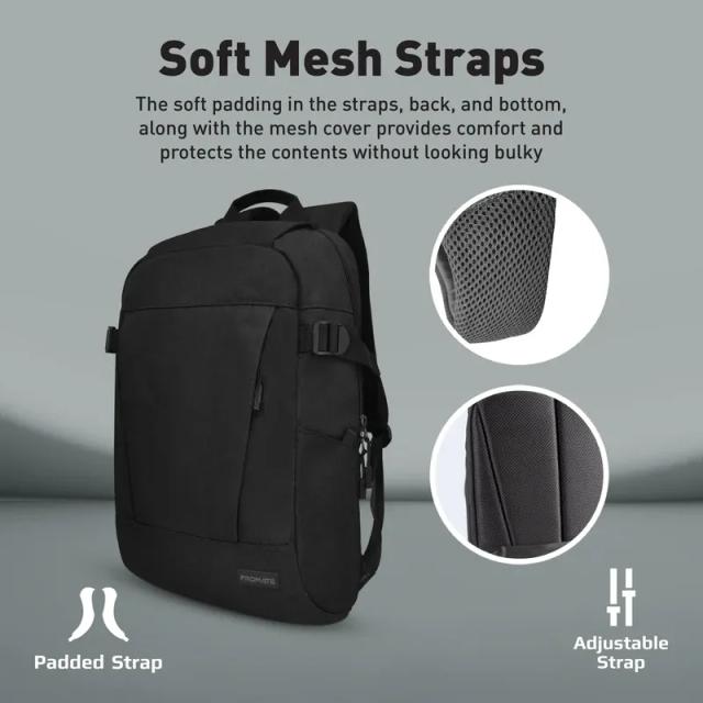 Promate - Birger 15.6"" ComfortStyle™ Laptop Backpack with Large Compartments