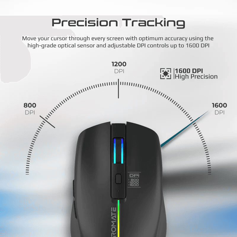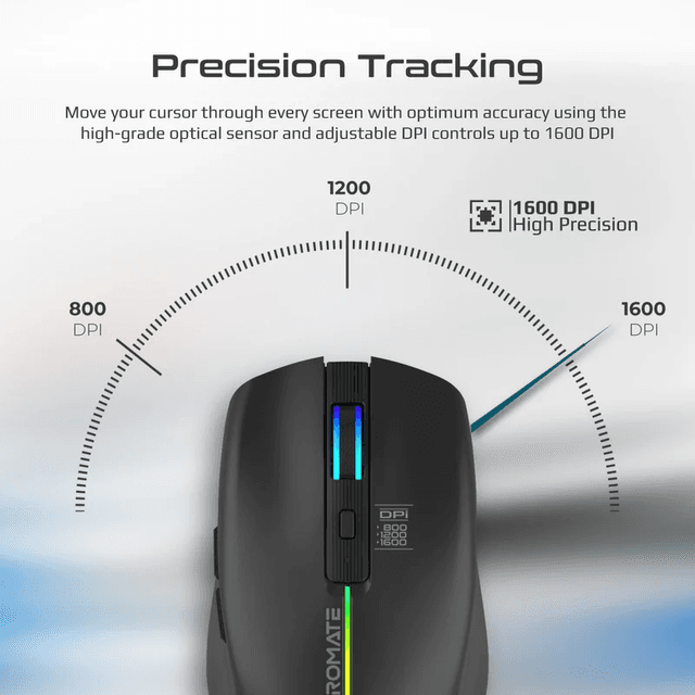 Engineered with an advanced optical sensor and DPI adjustments up to 1600 DPI, this stunning mouse lets you track through the screen with unmatched accuracy. Kitt offers a working time of 33 hours and an exceptional standby time of 90 days. Work lag-free and cable-free with the built-in 500mAh rechargeable battery. Designed to provide ultimate comfort, Kitt has an ergonomic design with stylish RGB lights to enhance productivity and light up your environment.