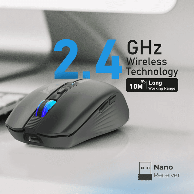 2.4GHz Wireless Ergonomic Optical Mouse with LED Rainbow Lights