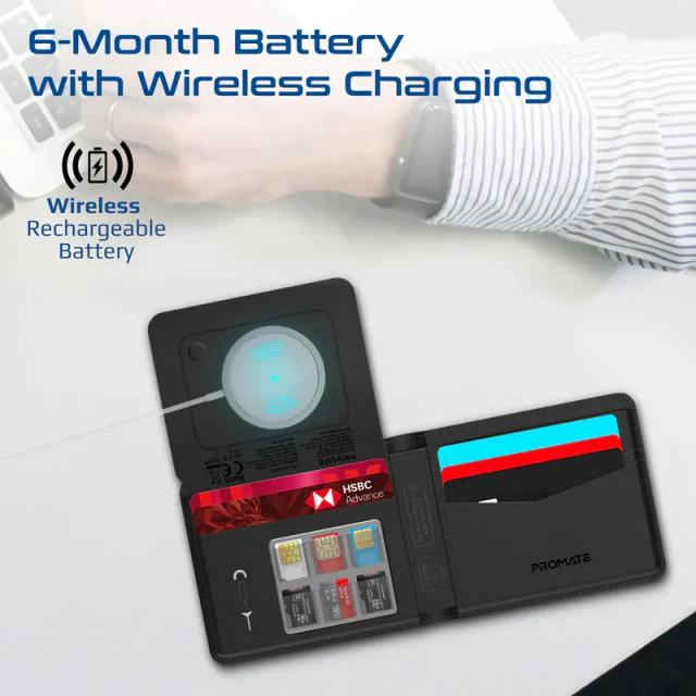 Promate ProWallet – Smart Anti‑Loss Leather Wallet with Global Tracking