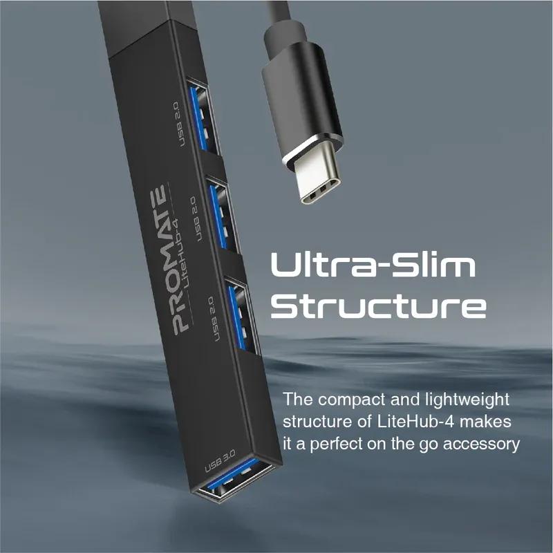 Promate - LiteHub-4, 4-in-1 Multi-Port USB-C Data Hub