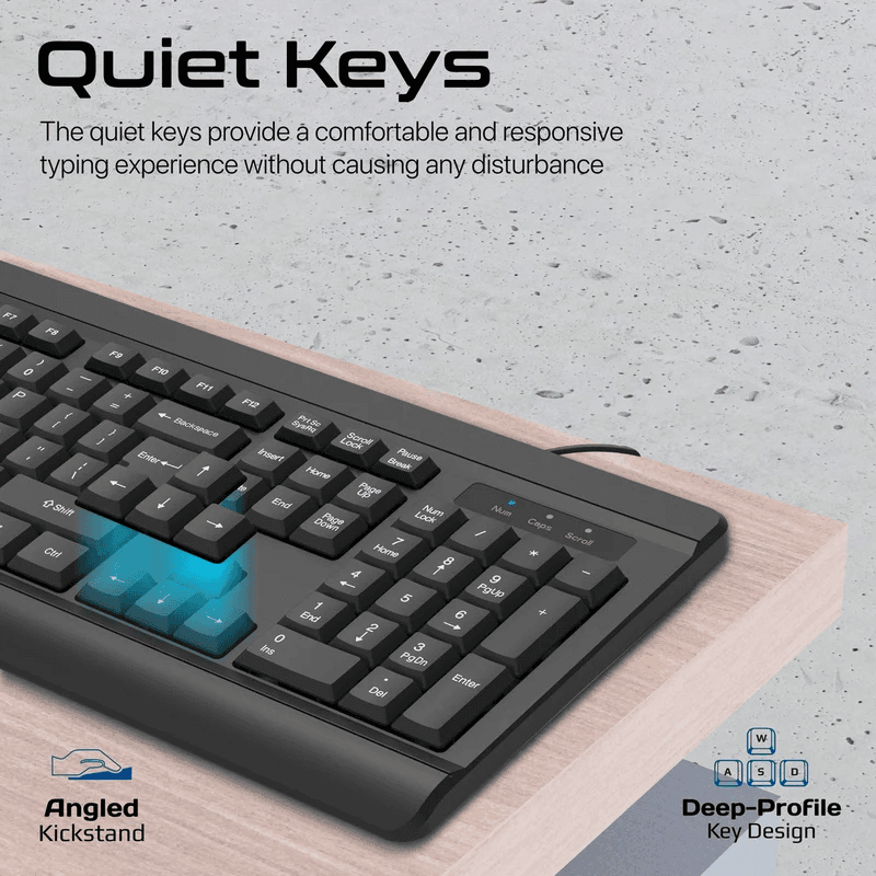 Quiet Keys Wired Keyboard and 1200 DPI Mouse