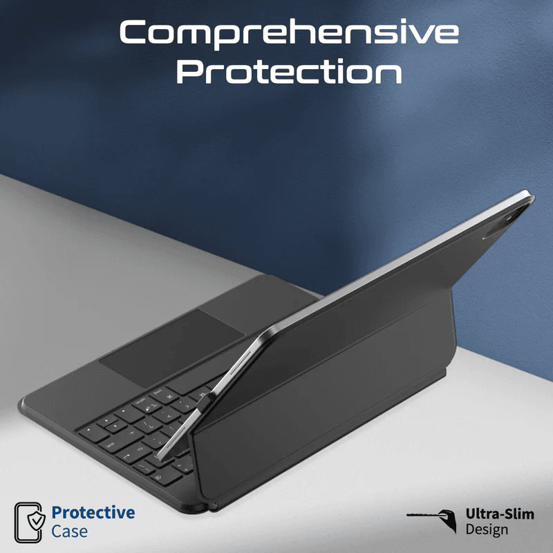 Elevate your iPad experience with the FlexKeys-11Pro, the cutting-edge Folio Touch Wireless Keyboard Case that redefines convenience and style. Boasting a high-precision trackpad and laptop-like typing, this case transforms your tablet into a productivity powerhouse. The stunning RGB backlit keys, featuring 7 different modes, will illuminate your workspace with vibrant colours. Seamlessly connect with the Smart Connector and enjoy efficient 10W passthrough charging for uninterrupted usage. With an adjustable kickstand for versatile viewing angles and comprehensive front and back protection, your iPad stays safe and secure. The Smart Connector ensures seamless connection with the iPad, making the FlexKeys-11Pro the ultimate accessory for your iPad device.