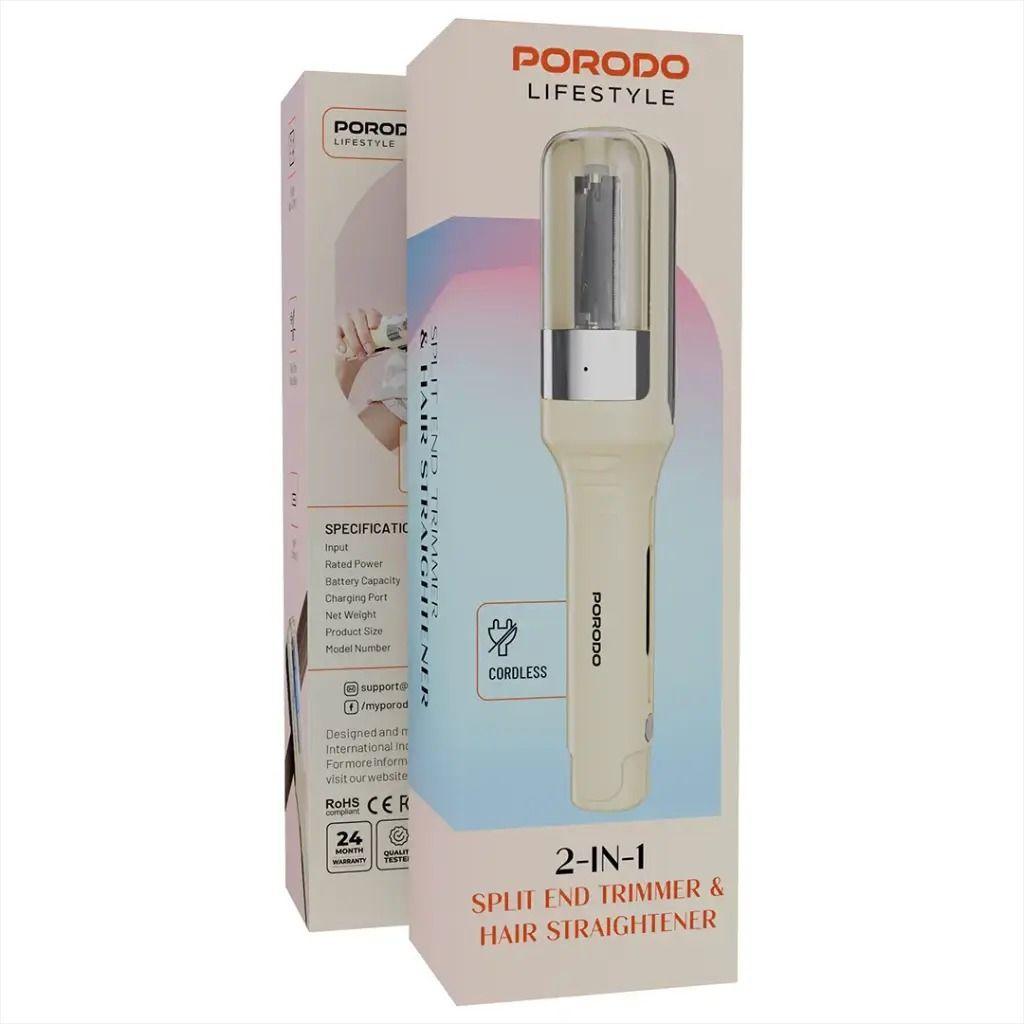 Porodo Lifestyle PDLFSTHSETWH 2-in-1 Split End Trimmer & Hair Straightener – Smooth, Healthy Hair Anytime