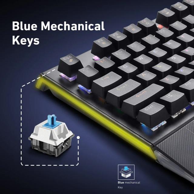Blue Mechanical Switches: Fast and tactile feedback for precise gaming.