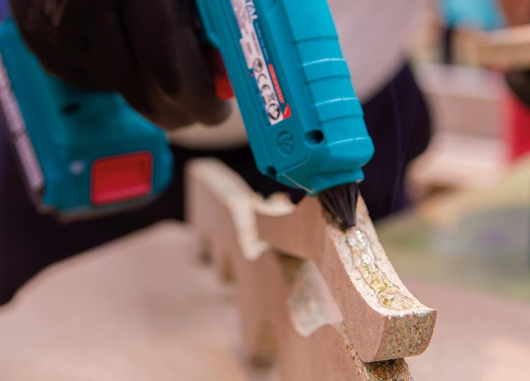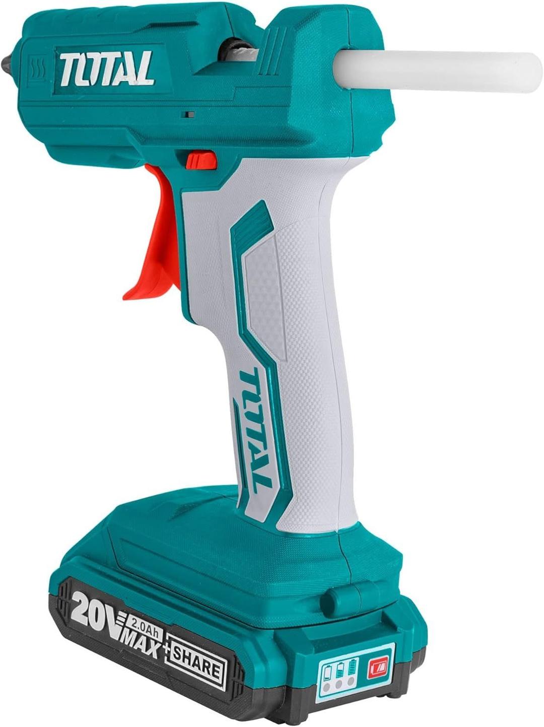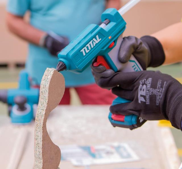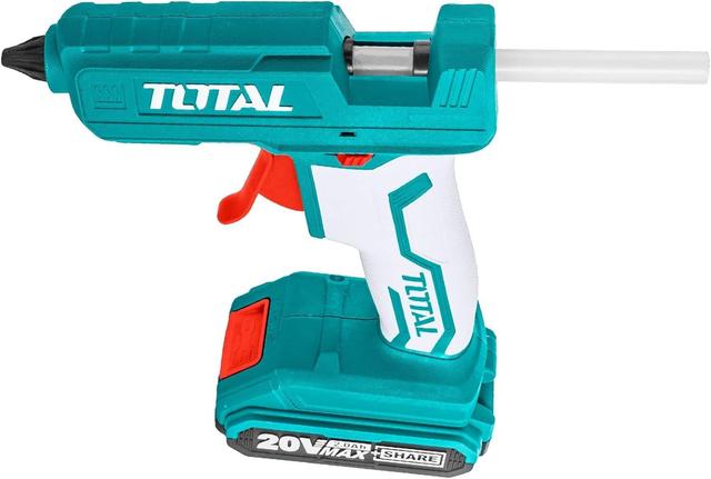 The Total 20V battery-powered glue gun is capable of bonding a range of different substrates including paper, rubber, ceramics, metals, plastics, glass, wood and more, and is also used in a wide variety of applications in many industries, for use in household and industrial processes.