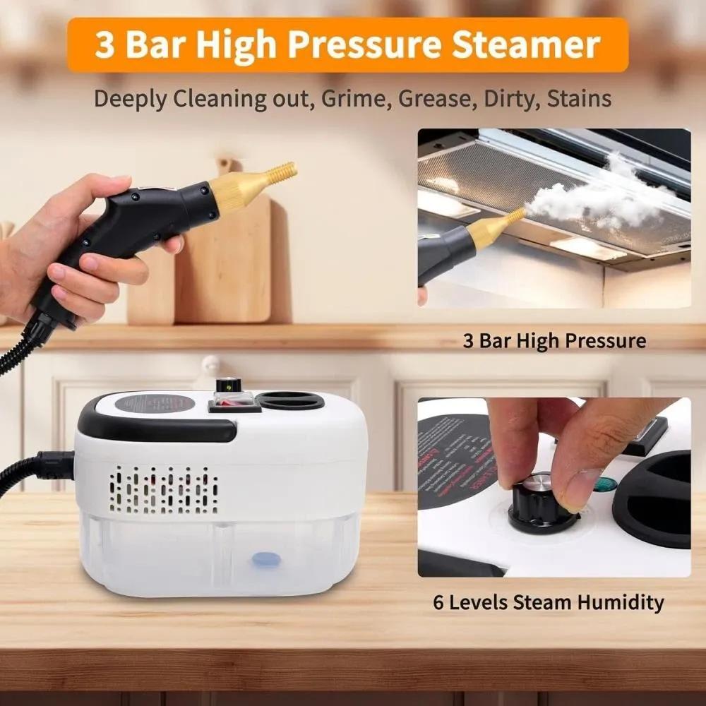 [High Temperature & Pressure Steam] 2500W high power can generate 229°F/105°C high temperature and 3BAR pressure steam within 10s, effectively remove stubborn greasy dirt and stains.