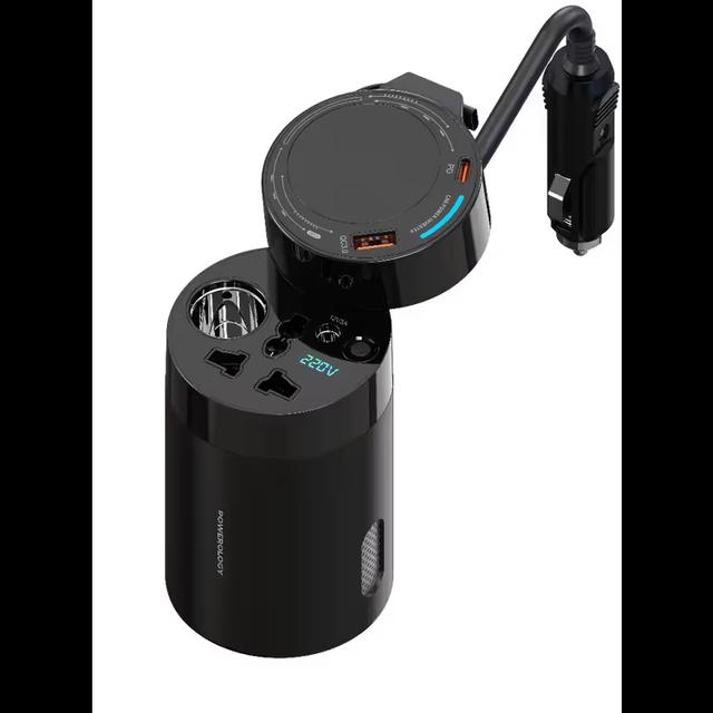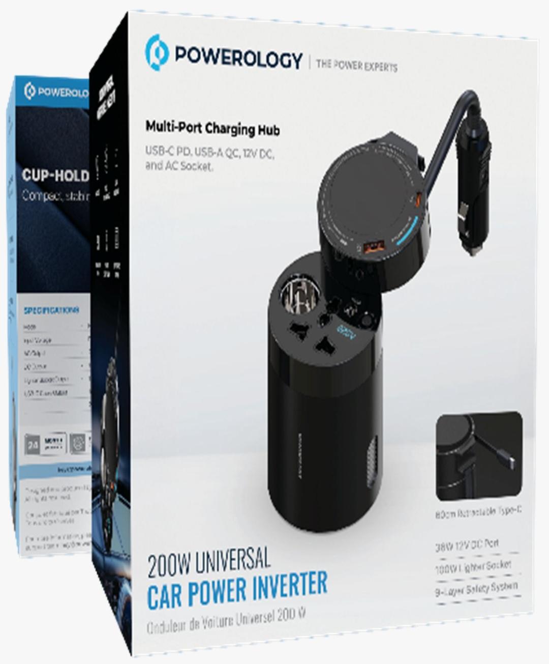 Powerology PWCPI200WBK 200W Universal Car Power Inverter – Multi-Port Fast Charging Car Power Converter
