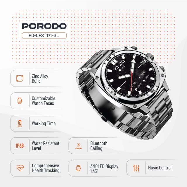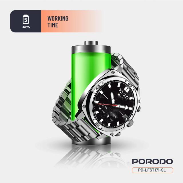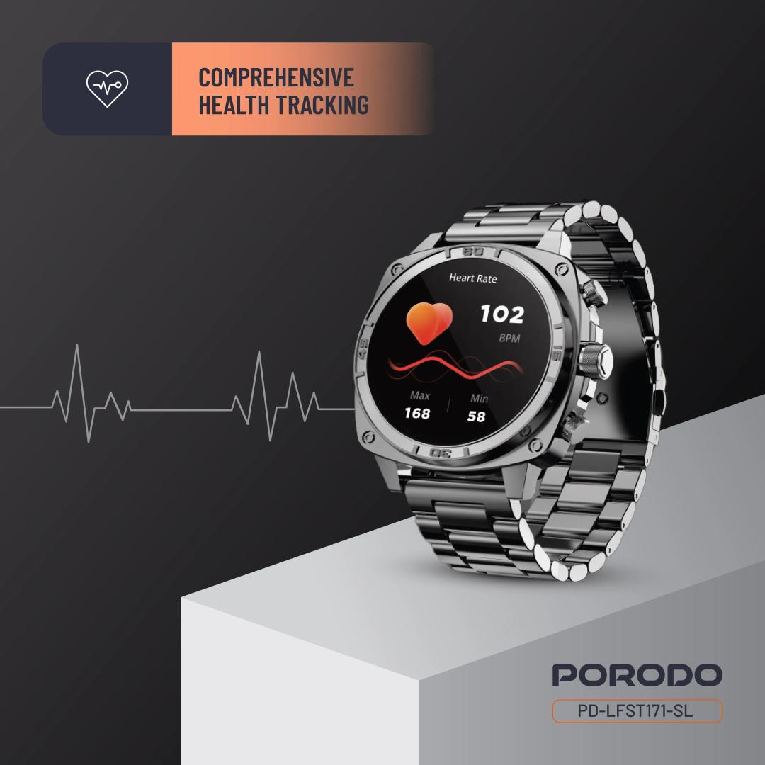 Porodo PD-LFST171-SL Chrono Steel Smart Watch