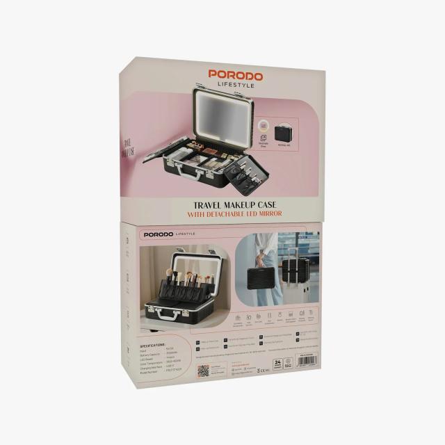 Porodo Lifestyle PDLFST4029BK Travel Makeup Case with Detachable LED Mirror - Black